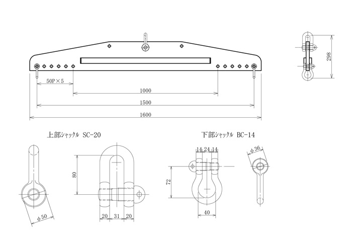 - (吊り巾) 1000~1500mm(100mmピッチ)